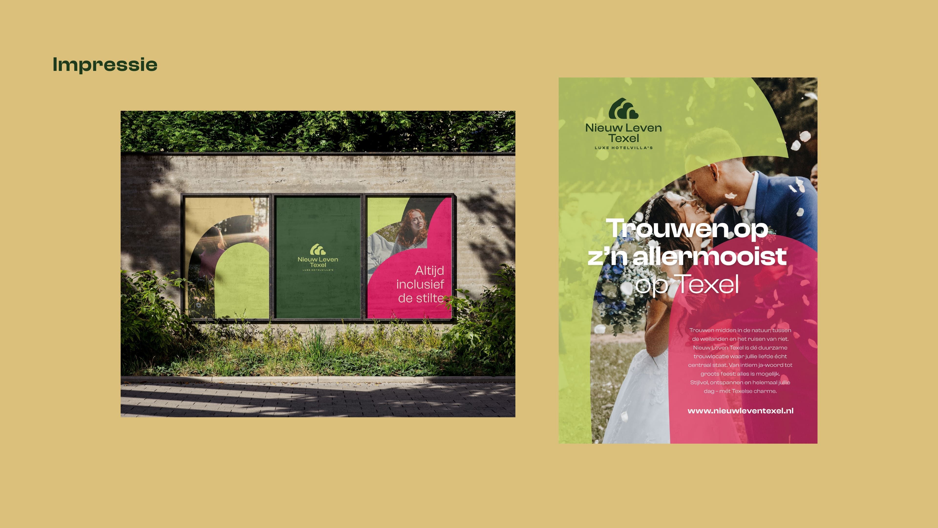 ‘Verrassend anders’ is een belangrijke kernwaarde en dat zie je terug in het uitgesproken kleurenpalet: lichtgroen gecombineerd met fel roze. Een opvallende look die past bij de ambitie van Nieuw Leven Texel.